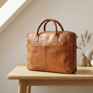 Onze tassen worden niet dunner of slapper met de jaren. Volgroeid leer wordt juist sterker en steviger — een tas die je over tien jaar nog steeds pakt.
